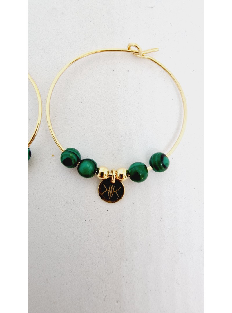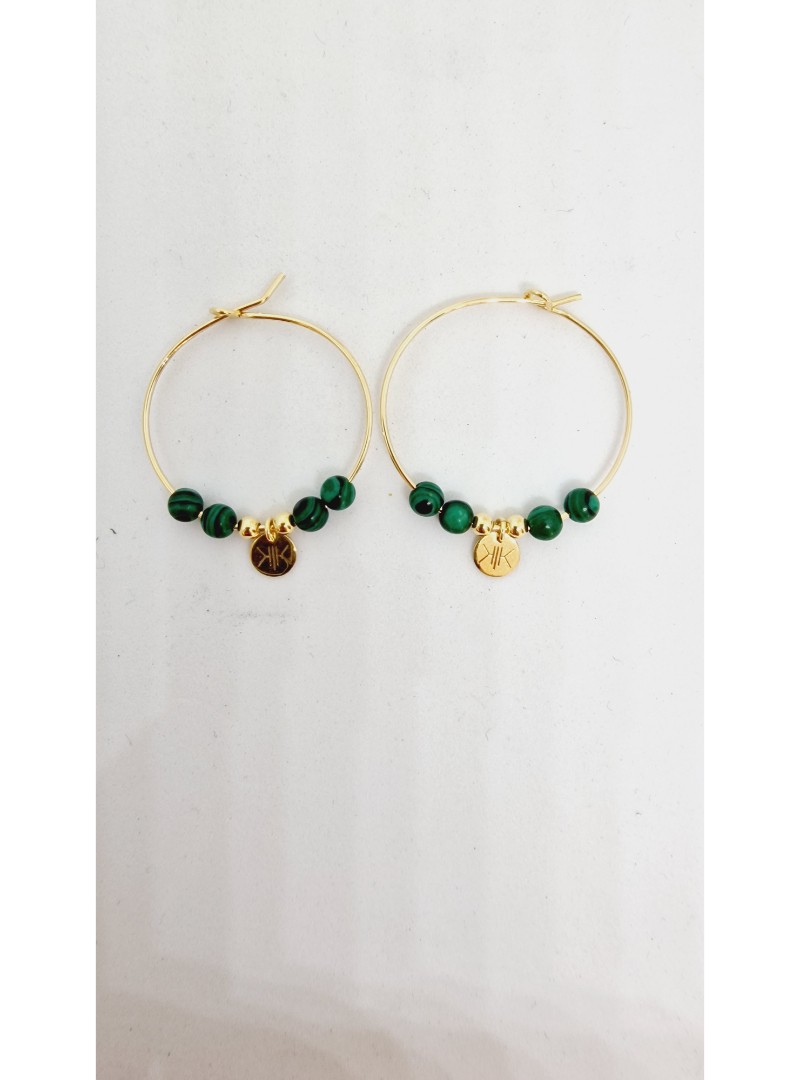 Boucles d'oreilles créoles en vermeil et pierres malachite.