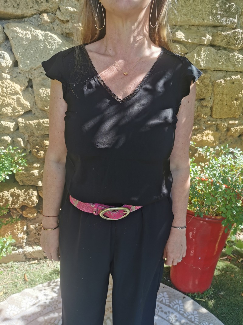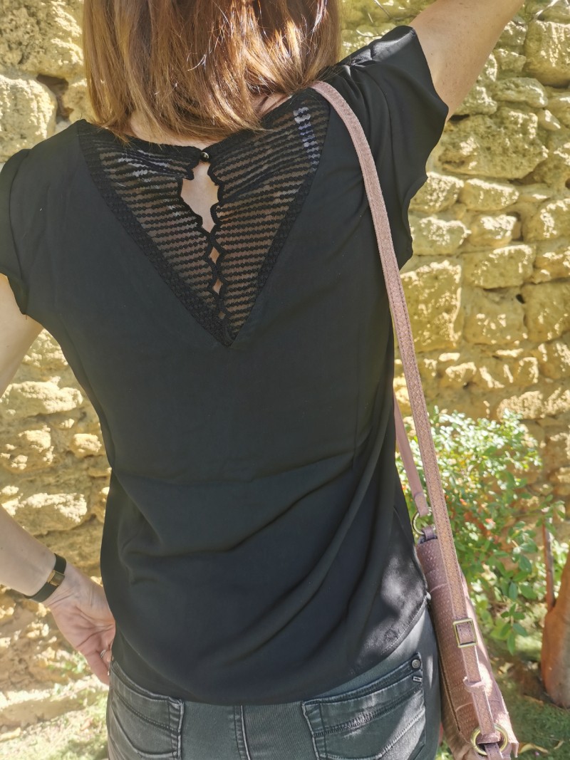 Ce top à la coupe légèrement cintrée met en valeur toutes les formes. Le dos travaillé permet un rendu chic et glamour.