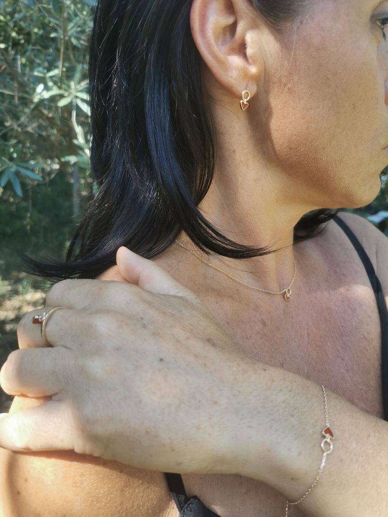 Collier Cœur plaqué or 5 microns. Émail rouge.