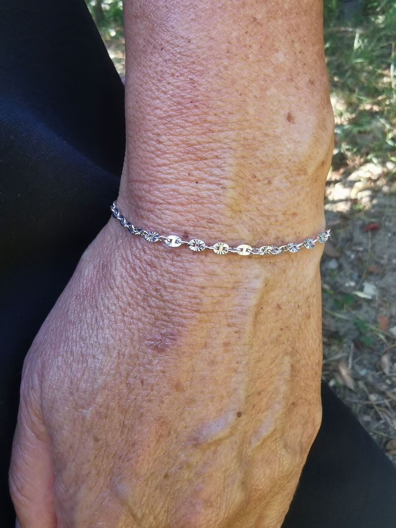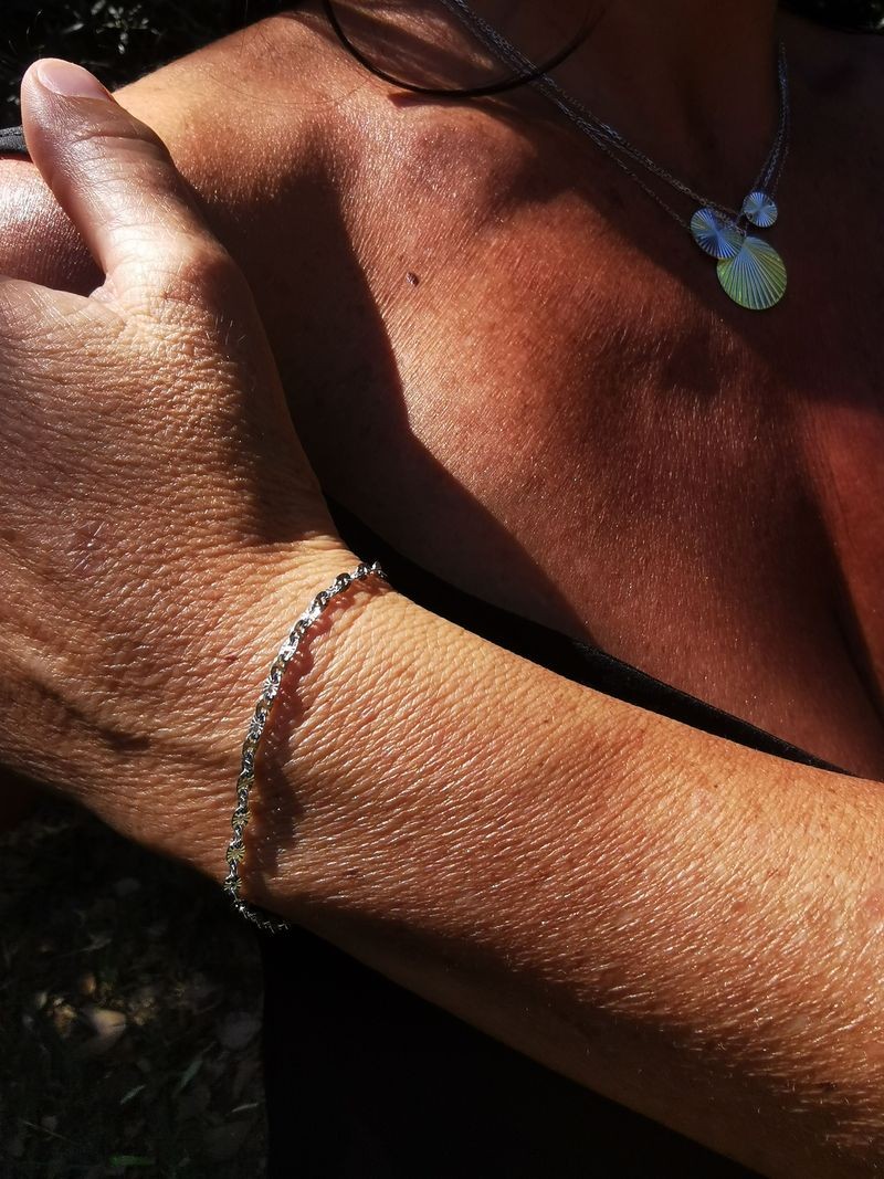 Ce bracelet capte et reflète la lumière grâce à son aspect diamanté.