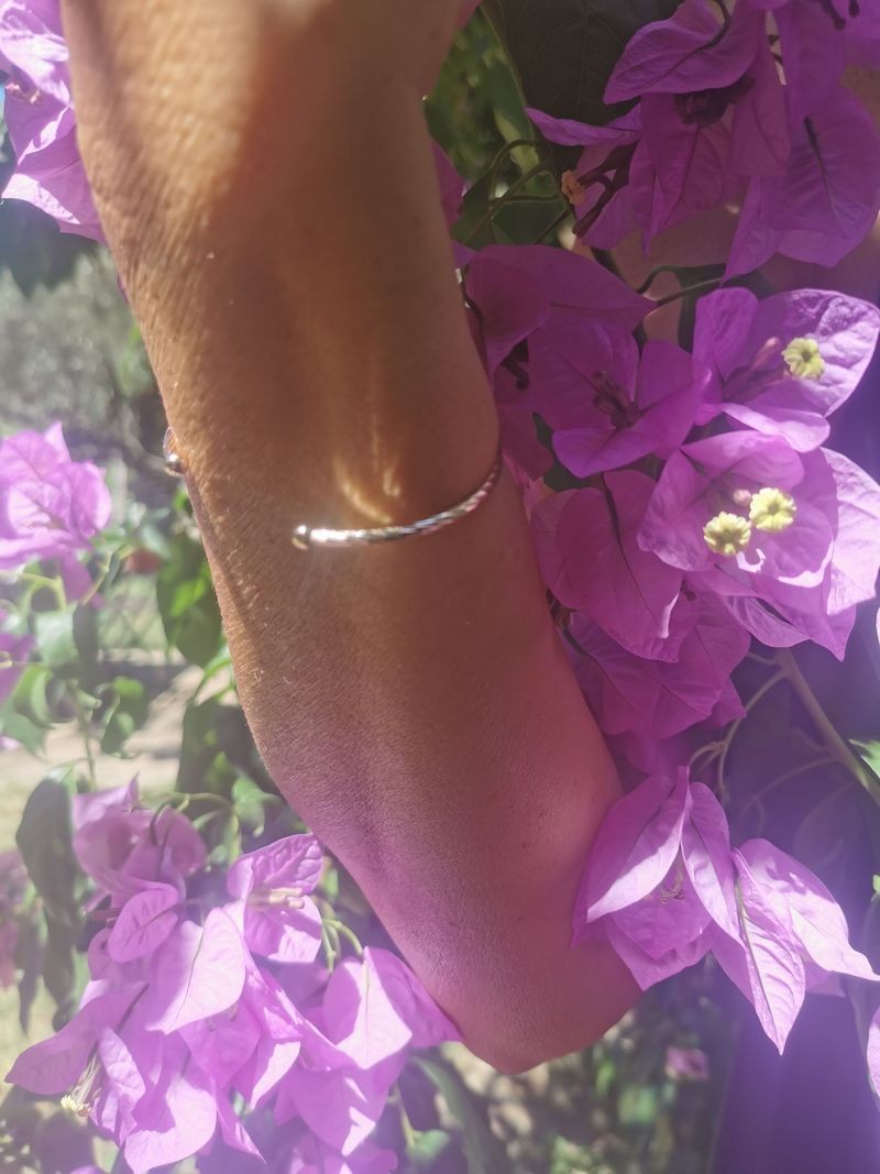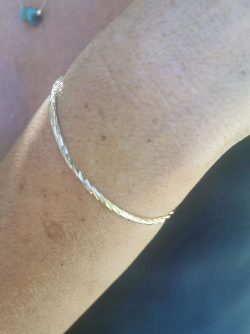 Ce jonc travaillé à l'aspect diamanté reflète la lumière ,chic et sobre ,il est un intemporel .